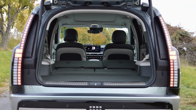 Mit 87.490 Euro Listenpreis (diverse Boni stehen bereit) steht über unserem Siebensitzer nur noch der Sechssitzer. Der ist mit drehbaren Einzelsitzen in Reihe zwei und einer verschiebbaren Mittelkonsole noch mehr Luxus-Shuttle. Nachdem sich auf 5,06 Metern maximal 2419 Liter Kofferraum ausgehen, kann der Ioniq 9