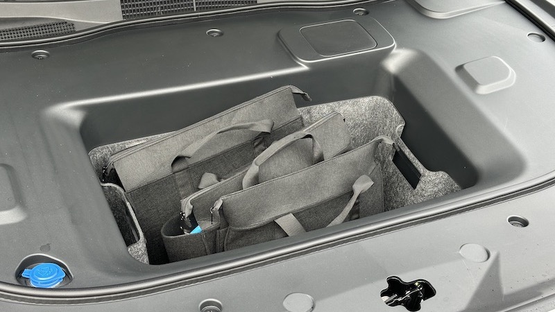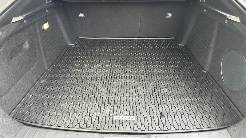 Wir hatten in unserem Standard-Range-Testwagen die 68,8-kWh-Batterie (LFP) für reale 400 Kilometer Reichweite an Bord. Schnellladen mit 165 kW gelingt in 24 Minuten (10 auf 80 Prozent). Schöner Frunk mit herausnehmbarer Tasche unter einer von Gasdruckfedern gehaltenen Haube. Der Mazda6e mag wie eine Limousine aussehen, bietet aber eine große Heckklappe für einen angemessenen Zugang zum Gepäckabteil. Die 337 Liter auf dem Papier wundern uns etwas, denn der Kofferraum wirkt viel größer, ist gut nutzbar. Die Rücksitzlehnen sind geteilt umlegbar, dann gibt Mazda 678 Liter Volumen an (bei Beladung bis zur Gepäckraumabdeckung). Gut zu wissen ist die Anhängelast von 1.500 Kilogramm, der Mazda6e bietet immer Heckantrieb. Preis wie auf den Fotos in der Ausstattung Takumi mit der Option Aero Gray (kennen wir bereits vom MX-5, 800 Euro Aufpreis): 44.325 Euro. Elektrische Heckklappe, Panoramadach, Sony-Soundsystem, Sitzklimatisierung vorn, Ambientebeleuchtung und vieles mehr ist – wie eingangs schon erwähnt – serienmäßig.